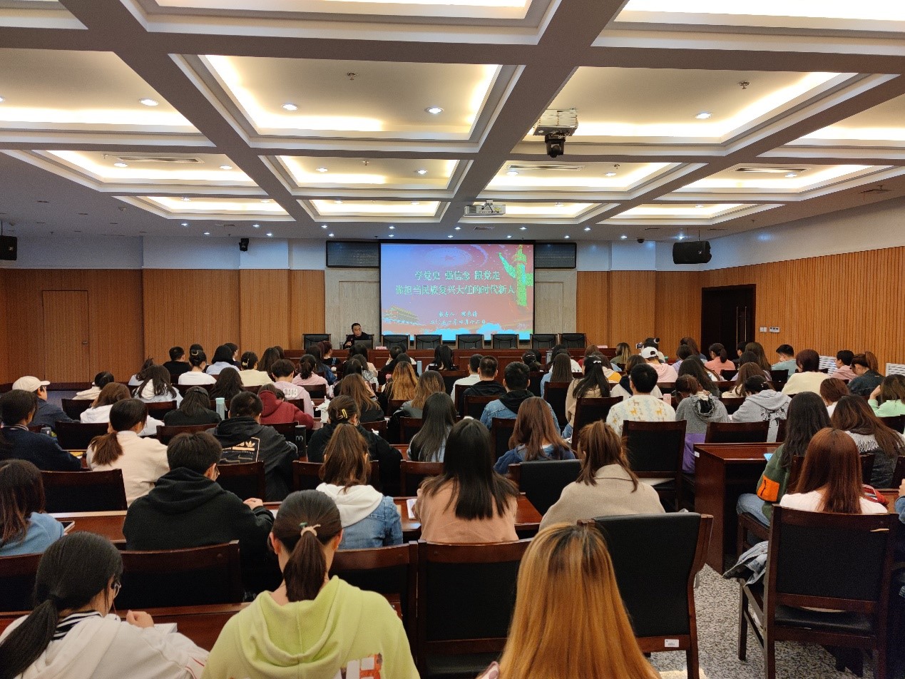 報告中,程永清副校長講述了偉大的無產階級革命家曾志與其遺腹子石來發(fā)的失散與重逢,以及她處理與石來發(fā)及家人關系的典型事例,闡述了中國共產黨人的高尚品德和大無畏的革命精神,勉勵同學們要樹立遠大理想,不斷堅定理想信念,強化使命擔當,要志存高遠,練就過硬本領,用青春和汗水描繪自己的未來,去譜寫自己人生的華彩樂章。他還以我校1954年畢業(yè)的“溫青班”女同學集體在玉門油田成立全國第一個女子測量隊的先進事跡,教育學生樹立正確的就業(yè)觀,為中華民族偉大復興貢獻青春。