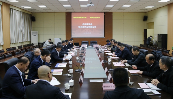 劉自強總裁對學校事業(yè)發(fā)展取得的成績表示祝賀,并從公司戰(zhàn)略規(guī)劃和未來發(fā)展方向兩方面介紹了公司的基本情況。他說,在西安石油大學學習的經(jīng)歷,對自己和公司的發(fā)展都起到了非常重要的作用。西安石油大學為公司輸送了眾多優(yōu)秀的人才,他們在企業(yè)發(fā)展中起到了重要的積極作用,如今都已成為公司中堅力量,這充分體現(xiàn)了西安石油大學在人才培養(yǎng)方面的優(yōu)勢。他希望,雙方通過此次合作,積極推動非常規(guī)油氣勘探開發(fā)、地熱領域科學研究、人才培養(yǎng)交流、校園綜合服務平臺建設等方面深層次合作,推動雙方事業(yè)共同發(fā)展。