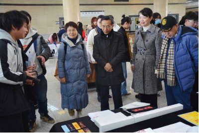 1222日上午,人文學(xué)院2018級(jí)視覺(jué)傳達(dá)設(shè)計(jì)專業(yè)《包裝設(shè)計(jì)》課程創(chuàng)新、創(chuàng)業(yè)實(shí)踐作品展“國(guó)潮來(lái)襲/弄潮兒文創(chuàng)集市”的開(kāi)幕式在西安石油大學(xué)鄠邑校區(qū)圖書館二樓大廳舉行。校黨委副書記張木出席,學(xué)生工作部(處)、創(chuàng)新創(chuàng)業(yè)中心、教務(wù)處、圖書館負(fù)責(zé)人,人文學(xué)院2018級(jí)視覺(jué)傳達(dá)設(shè)計(jì)專業(yè)學(xué)生參加了開(kāi)幕式。