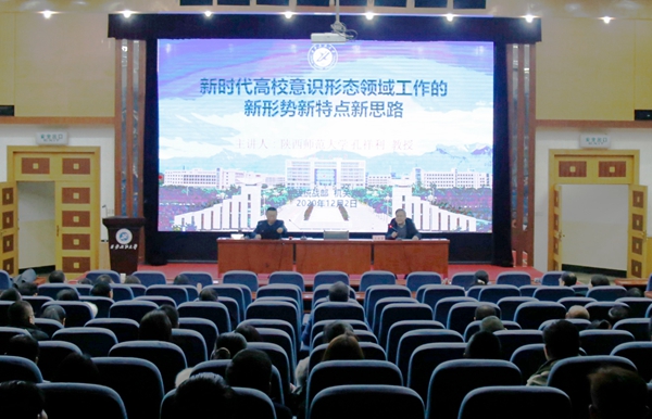 122日下午,根據(jù)學(xué)校黨委工作安排,黨委統(tǒng)戰(zhàn)部、機(jī)關(guān)黨委邀請陜西師范大學(xué)孔祥利教授,在雁塔校區(qū)學(xué)術(shù)報(bào)告廳作了題為《新時(shí)代高校意識形態(tài)領(lǐng)域工作的新形勢新特點(diǎn)新思路》的專題報(bào)告。陳軍斌副校長出席報(bào)告會。報(bào)告會由黨委統(tǒng)戰(zhàn)部部長、機(jī)關(guān)黨委書記吳復(fù)雷主持。