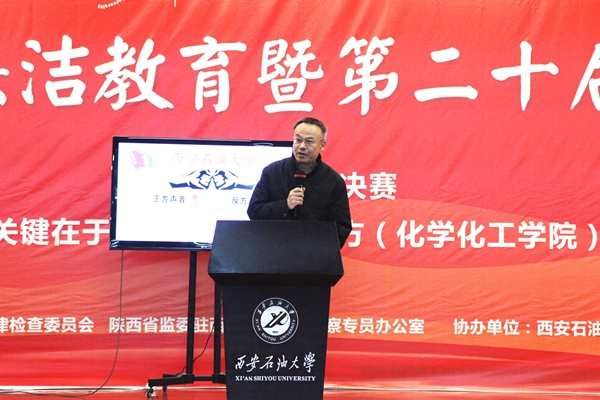 11月27日晚,“清正廉潔、筑夢同行”廉潔教育暨西安石油大學第二十屆“智者杯”大學生辯論賽決賽在鄠邑校區(qū)騰輝大學生活動中心舉行。校黨委副書記、紀委書記、陜西省監(jiān)委駐校監(jiān)察專員李延平出席比賽。相關部門、學院負責人觀摩比賽。馬克思主義學院九位教師擔任辯論賽評委。
