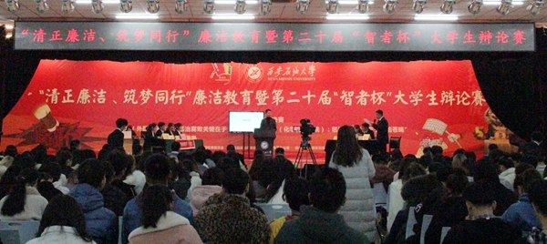 “智者杯”大學生辯論賽是我校校園文化建設的精品項目,曾獲得陜西省高校校園文化建設優(yōu)秀成果一等獎,是我校思政課實踐教學的重要組成部分。從10月26日開賽以來,第二十屆“智者杯”大學生辯論賽先后開展了資格賽、初賽、半決賽、決賽。全校十三個院系均派代表隊參加。賽事的前半段主要由馬克思主義學院和教務處主辦,由宣傳部、學生處、鄠邑校區(qū)管理辦公室、校團委協(xié)辦。“清正廉潔、筑夢同行”廉潔教育和“智者杯”辯論賽決賽由校紀委、陜西省監(jiān)委駐西安石油大學監(jiān)察專員辦公室主辦,馬克思主義學院和教務處協(xié)辦。