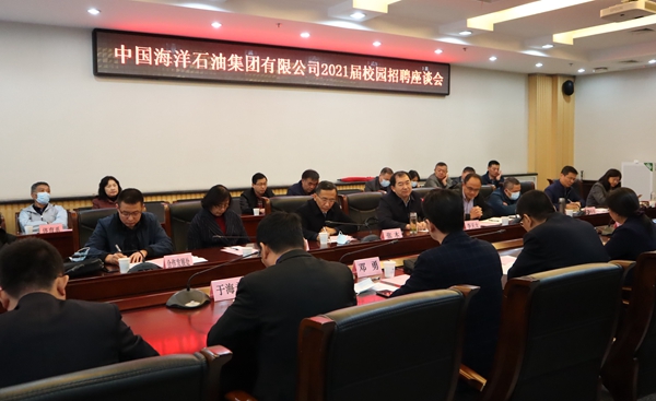 10月14日下午,中國海洋石油集團有限公司人事部來校洽談2021屆畢業(yè)生引進工作。座談會在鄠邑校區(qū)第二會議室召開,中海油人事部副總經(jīng)理周林波,我校校長李天太、校黨委副書記張木出席。中海油相關二級單位人力資源部負責人,我校相關部門、各院(系)主要負責人參加會議。座談會由學生工作部(處)長、就業(yè)指導中心主任趙健主持。