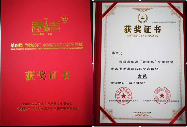 近日,第四屆“敦煌杯”中國琵琶藝術(shù)菁英展演落下帷幕,音樂系副主任張帆以具有濃郁京韻大鼓風(fēng)格的琵琶獨奏曲《弦子韻》以及琵琶傳統(tǒng)大套文曲《塞上曲》兩首曲目在比賽中獲得金獎。由于疫情原因,此次比賽首次采用了云端線上比賽的方式進行。8月初,張帆先以一首琵琶協(xié)奏曲《云想花想》晉級決賽,接著從晉級60人的決賽中脫穎而出,獲得金獎(全國第二名)的好成績。