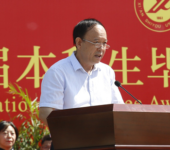 教師代表、三級(jí)教授、石油工程學(xué)院院長(zhǎng)周德勝向畢業(yè)生贈(zèng)言。他告訴同學(xué)們,畢業(yè)后要繼續(xù)保持青春的激情和追求真理的勇氣,繼續(xù)保持讀書的習(xí)慣,繼續(xù)熱愛在這里度過(guò)四年美好年華的西石大,老師們永遠(yuǎn)是同學(xué)們的堅(jiān)強(qiáng)后盾,母校永遠(yuǎn)是同學(xué)們的精神家園。