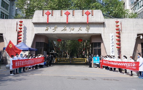 宋彥霞護(hù)士將一面帶到武漢的校旗回贈(zèng)給學(xué)校,這面校旗將珍藏在學(xué)校檔案館。她說:“感謝學(xué)校在我身處一線抗疫的時(shí)候,從精神上、物質(zhì)上給予的無微不至的關(guān)懷。正是有了學(xué)校這個(gè)堅(jiān)強(qiáng)后盾,我才能輕裝上陣、奮戰(zhàn)一線,我為自己是西安石油大學(xué)的一員感到自豪!”