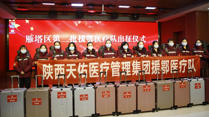 18日上午九點,宋彥霞等15名醫(yī)護人員在西安天佑醫(yī)院參加了雁塔區(qū)第二批援鄂醫(yī)療隊出征儀式,隨后將乘坐包機火速趕赴湖北地區(qū)投入救治工作。