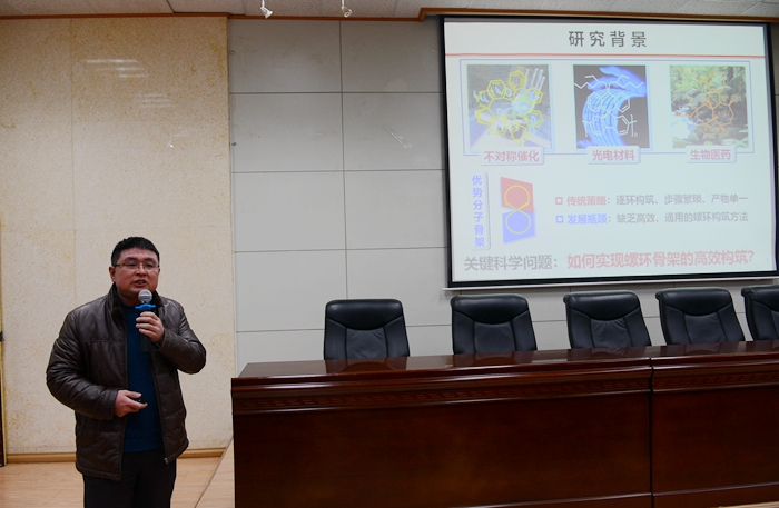 成立儀式結(jié)束后,與會專家就《抽油機(jī)減速器半流體潤滑劑產(chǎn)品標(biāo)準(zhǔn)》進(jìn)行了審定。同時會議還邀請西北大學(xué)化學(xué)與材料學(xué)院院長、國家杰出青年基金獲得者欒新軍教授作了題為“螺環(huán)構(gòu)筑的新策略與新方法”的報告,我校師生代表120余人現(xiàn)場聆聽。