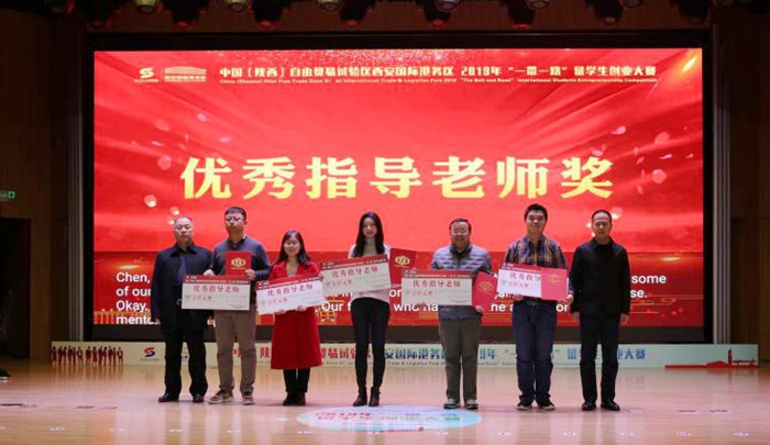 12月8日,中國(陜西)自由貿(mào)易試驗區(qū)西安國際港務(wù)區(qū)首屆“一帶一路”留學(xué)生創(chuàng)新創(chuàng)業(yè)大賽決賽暨頒獎典禮在西安國際港務(wù)區(qū)舉行。陳軍斌副校長作為特邀嘉賓出席典禮并為大賽“最佳指導(dǎo)教師獎”獲得者頒獎。我校創(chuàng)新創(chuàng)業(yè)中心、國際教育學(xué)院部門負責(zé)人及50余名留學(xué)生代表參會。