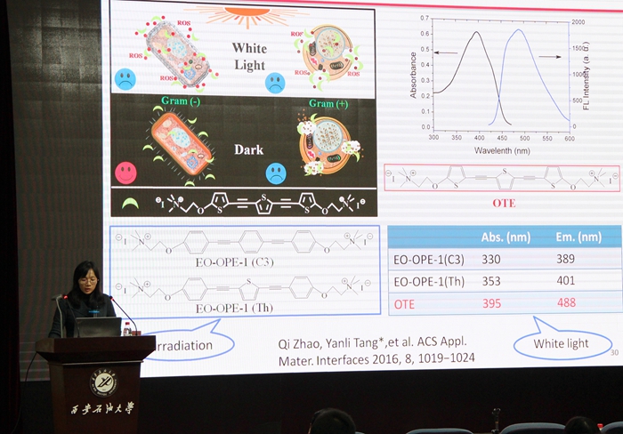 論壇的第一階段由宋海洋教授和張智平教授主持。西安交通大學丁向東教授作了題為“機器學習輔助新材料研發(fā)與多尺度計算”的特邀報告;國家杰出青年科學基金獲得者、國家百千萬人才工程入選者、西北大學吳彪教授作了題為“陰離子配位化學”的特邀報告;國家優(yōu)秀青年科學基金獲得者、陜西省中青年科技創(chuàng)新領軍人才、陜西師范大學唐艷麗教授作了題為“功能化共軛聚合物探針及生物醫(yī)學應用”的特邀報告。