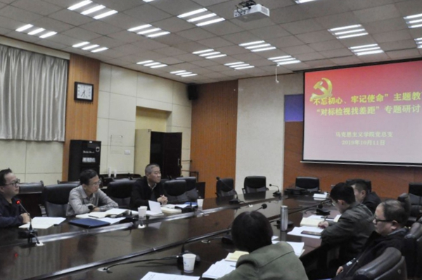 根據學院黨總支主題教育學習計劃安排,與會人員就第三個專題“對標檢視找差距”進行了交流研討。李淵書記講到,通過“不忘初心、牢記使命”主題教育,自身思想受到了洗禮并更加堅定了理想信念,作為馬克思主義學院黨總支書記深感責任重大、任務艱巨,要帶好班子、帶好思政課教師隊伍,努力完成黨交給我們“立德樹人”的根本任務。結合前期調研情況,查找到自身還要很多需要提高的地方:一是對學院教師的成長和關懷還不夠,要努力為青年教師搭建更多的交流平臺提供更多的學習機會,在職稱評定、教學科研等方面為教師爭取更多的政策,更好的發(fā)揮教師的積極性、主動性、創(chuàng)造性。二是對思政課教師的思想引領和政治教育還不夠,要努力以黨建工作為抓手,充分發(fā)揮黨員的示范引領作用,將集體備課會與主題教育學習活動相融合,加強師德師風建設,切實提升思政課教師的業(yè)務能力、授課水平,努力做到習近平總書記對思政課教師政治要強、情懷要深、思維要新、視野要廣、自律要嚴、人格要正的要求,為學生奉獻“精彩一課”。肖發(fā)榮副院長從三方面談了體會,一是通過主題教育集中學習和個人自學,真正做到了理論學習有收獲、思想政治受洗禮,對自身有很大提升。二是通過調研活動,了解全校本、碩、博學生對思政課教學的意見,發(fā)現問題,找出差距,為下一步整改落實提供了依據和參考。打鐵還需自身硬,作為一名思政課教師要高標準、嚴要求,不斷提高自己的理論水平和教學水平,在抓好學生課堂教學的同時,還要積極參與理論宣講等社會服務活動。作為主管教學的副院長,要努力推動思政課改革創(chuàng)新,不斷增強思政課的思想性、理論性、親和力和針對性。三是要將主題教育學習落到實處,切實做到情系師生解難題。與會教工黨支書記潘景余、孫一仰老師也分別作了交流發(fā)言,他們談到思政課教師首先要堅持學習,不斷提升自身的理論水平,多在課堂教學上下功夫,提升教學質量,更好的用習近平新時代中國特色社會主義思想鑄魂育人。