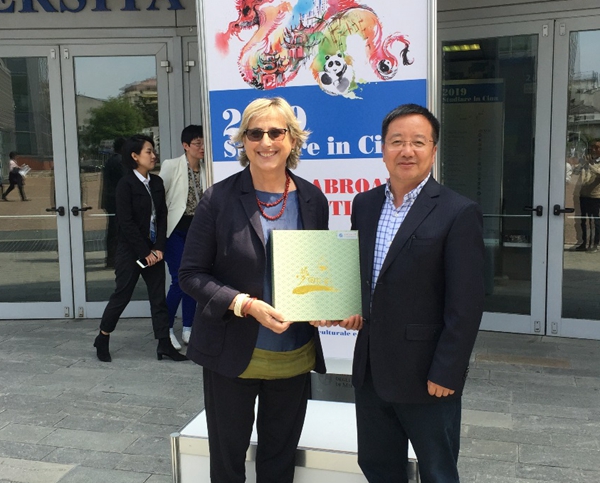 李華副校長(zhǎng)與意大利米蘭國(guó)立大學(xué)孔子學(xué)院外方院長(zhǎng)蘭珊德交流