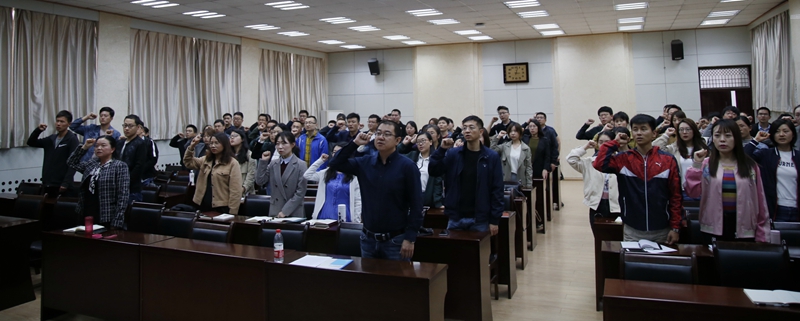 開班儀式上,武曉朦部長介紹了新入職教師培訓(xùn)的總體安排,并就培訓(xùn)紀律作了要求,隨后舉行了莊嚴的新入職教師集體宣誓儀式。此次新入職教師集體宣誓在我校是首次舉行,今后將把新入職教師集體宣誓活動作為教師入職培訓(xùn)的重要一課,引導(dǎo)廣大教師樹立立德樹人理念,增強新入職教師職業(yè)責(zé)任感和榮譽感。