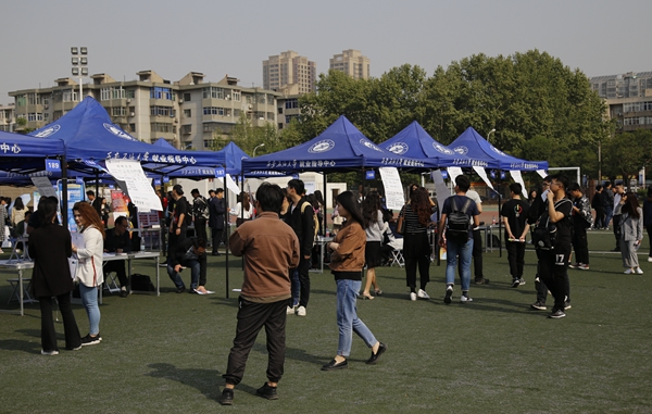 4月19日,陜西省高校2019屆少數(shù)民族畢業(yè)生聯(lián)盟招聘會(huì)在我校雁塔校區(qū)體育場舉行。此次招聘會(huì)由省教育廳和省國資委主辦,省高校學(xué)生就業(yè)指導(dǎo)中心和我校共同承辦。省委教育工委副書記李智軍、省教育廳副廳長王紫貴到招聘會(huì)現(xiàn)場考察指導(dǎo)工作。我校黨委副書記張木、副校長蘇文甫,省教育廳學(xué)生處、高校學(xué)生就業(yè)指導(dǎo)中心有關(guān)負(fù)責(zé)人陪同考察。來自全國各地220余家單位的400余名招聘代表、全省高校2000余人次畢業(yè)生參加了招聘會(huì)。