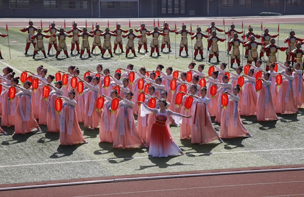 緊接著,由校團(tuán)委精心組織編導(dǎo)的開場舞蹈《送你一個(gè)長安》,拉開了第三十八屆“陽光體育”田徑運(yùn)動會的序幕。該舞蹈造型雅致、舞姿優(yōu)美,較好地體現(xiàn)了中國古代傳統(tǒng)文化,獲得了在場師生的普遍好評。