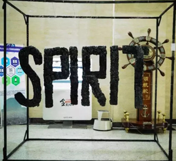 從側(cè)面看,是王進(jìn)喜的人物頭像;從正面看,是“spirit”字樣。作品用如此新穎獨(dú)特的方式闡述著:無論何時(shí),鐵人精神都以其不朽的價(jià)值與永恒的生命力,激勵(lì)著世人開拓進(jìn)取,繼往開來。