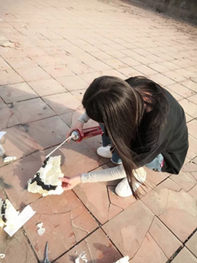裁制階段:作品選用簡(jiǎn)單的泡沫材料,裁制出所需形狀