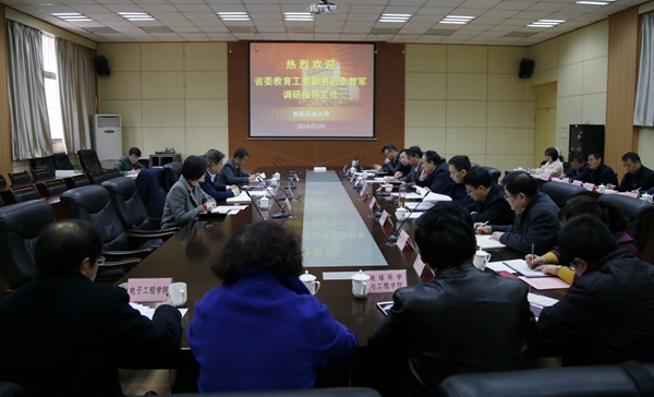 3月5日下午,省委教育工委副書記李智軍,學工部(學生處)部(處)長唐澍、副部(處)長白瑩、干部馬繼剛一行來校調研指導黨建工作。校黨委書記賽云秀、副書記雷西合參加座談會。