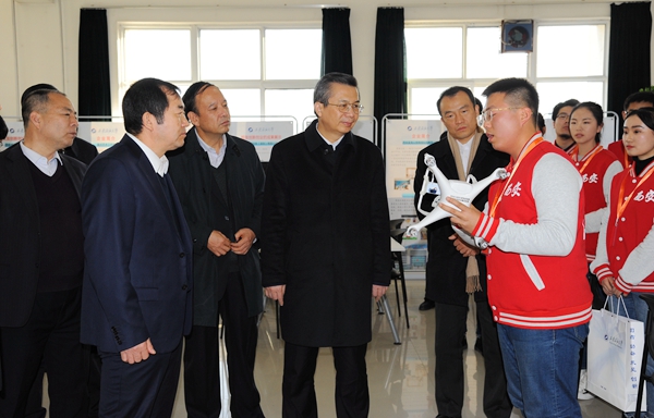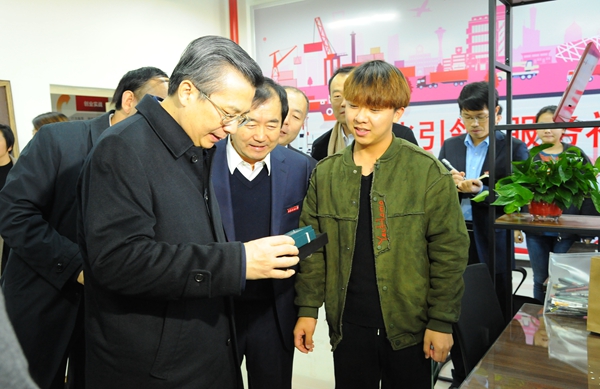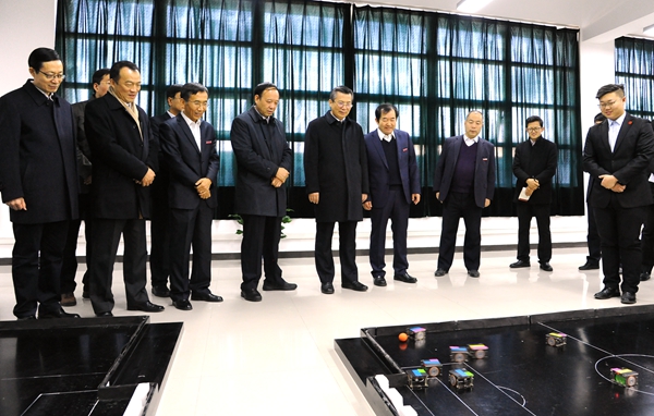 王永康首先來(lái)到我校工程訓(xùn)練中心,先后參觀了石油科技創(chuàng)新成果館、足球機(jī)器人創(chuàng)新實(shí)踐基地、機(jī)械創(chuàng)新創(chuàng)業(yè)基地、大學(xué)生文化創(chuàng)新創(chuàng)業(yè)工坊、眾創(chuàng)加油站等,認(rèn)真聽(tīng)取了我校創(chuàng)新創(chuàng)業(yè)成果和作品介紹,詳細(xì)了解學(xué)??萍汲晒D(zhuǎn)化、創(chuàng)新創(chuàng)業(yè)情況,他對(duì)我校創(chuàng)新創(chuàng)業(yè)成果表示肯定,稱(chēng)贊學(xué)校創(chuàng)新創(chuàng)業(yè)的氛圍濃、創(chuàng)新創(chuàng)業(yè)的成果多、創(chuàng)新創(chuàng)業(yè)人才多,在科研、創(chuàng)新、創(chuàng)業(yè)等方面很有特色,做得很好;并與現(xiàn)場(chǎng)師生親切交流,鼓勵(lì)大家繼續(xù)努力,把創(chuàng)新創(chuàng)業(yè)做得更好。