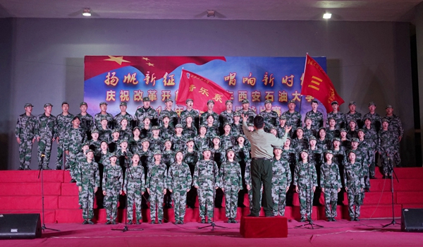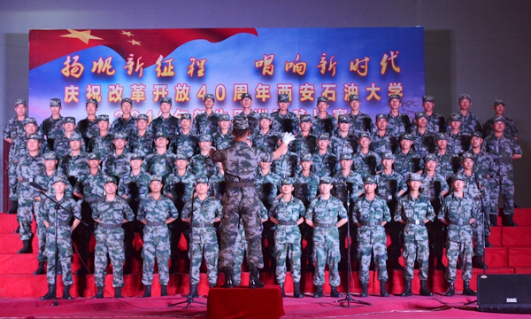 9月17日晚,我?!皳P(yáng)帆新征程,唱響新時(shí)代——慶祝改革開(kāi)放40周年西安石油大學(xué)2018級(jí)新生軍訓(xùn)歌詠比賽”在鄠邑校區(qū)西田徑場(chǎng)舉行。軍訓(xùn)領(lǐng)導(dǎo)小組組長(zhǎng)、校黨委副書(shū)記張木,軍訓(xùn)旅司令部參謀長(zhǎng)劉廣出席活動(dòng)。學(xué)生工作處、保衛(wèi)處、校團(tuán)委、教務(wù)處、鄠邑校區(qū)管理辦公室等相關(guān)部門(mén)負(fù)責(zé)人擔(dān)任評(píng)委,各院(系)軍訓(xùn)工作負(fù)責(zé)人及2018級(jí)全體新生一同觀看了比賽。