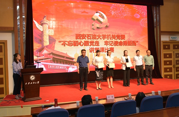 為深入學(xué)習(xí)宣傳貫徹黨的十九大精神,認(rèn)真學(xué)習(xí)領(lǐng)會習(xí)近平新時代中國特色社會主義思想,根據(jù)組織部工作安排,機(jī)關(guān)黨委于5月25日下午在雁塔校區(qū)學(xué)術(shù)報告廳舉辦“不忘初心跟黨走,牢記使命勇?lián)?dāng)”講黨課比賽。學(xué)校部分院(系)級單位黨組織負(fù)責(zé)人擔(dān)任比賽評委,機(jī)關(guān)黨委全體黨員參加了活動。