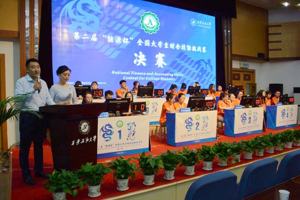 此次大賽分為會計信息化操作、案例分析和擂臺賽三個環(huán)節(jié)。來自全國27所高校的參賽選手,經(jīng)過19日上午的會計信息化操作比賽和下午的案例分析比賽,最終產(chǎn)生進入擂臺賽的十六強隊伍。20日上午,擂臺對抗賽分兩場進行,每場8支隊伍參賽。擂臺賽由我校經(jīng)濟管理學(xué)院趙選民教授擔(dān)任裁判長,陜西延長石油集團有限責(zé)任公司總會計師康永智、我校原總會計師楊恒倉、西安電子科技大學(xué)總會計師謝軍占擔(dān)任仲裁員,我校經(jīng)濟管理學(xué)院聶亦慧教授、寧宇新教授、張渭民教授等擔(dān)任裁判員。競賽組織委員會主任、我校副校長陳軍斌親臨比賽現(xiàn)場指導(dǎo)工作。擂臺對抗賽現(xiàn)場氣氛活躍、競爭激烈,觀眾積極參與、共同監(jiān)督。經(jīng)過定人必答題、定隊必答題、搶答題、共答題和闖關(guān)沖刺題等環(huán)節(jié),參賽選手的財會專業(yè)知識、實際操作經(jīng)驗、臨場心理素質(zhì)均得到充分檢驗。