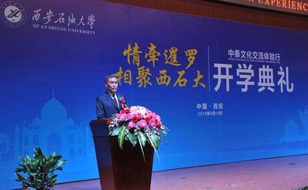 趙昶葆副廳長代表陜西省教育廳對來自泰國教育機構及學校的各位領導及師生的到來表示歡迎,并指出,教育是中泰友好合作的重要領域,兩國各層級教育部門及學校往來緊密,泰國留學生位居留學生總規(guī)模前列,期望西安石油大學借助教育部門政策支持,充分發(fā)揮陜西地域文化優(yōu)勢,繼續(xù)加大與泰國各教育機構的交流。