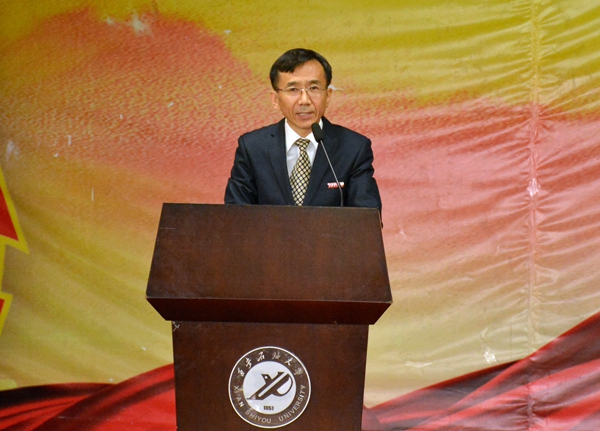 校黨委副書記張木代表學(xué)校對何榮校友一行的到來表示熱烈歡迎,對他支持學(xué)校發(fā)展、關(guān)愛貧困大學(xué)生的高尚善舉表示衷心感謝,并對廣大同學(xué)提出了三點希望:一要堅定信念、常懷感恩、志存高遠,積極投身實現(xiàn)中華民族偉大復(fù)興的時代洪流中。二要勤于實踐、艱苦奮斗、磨礪品質(zhì),為走上社會、服務(wù)人民、成就事業(yè)打下堅實基礎(chǔ)。三要刻苦鉆研、嚴謹篤學(xué)、奮發(fā)成才,努力成為創(chuàng)新型國家建設(shè)的未來骨干和中堅力量。