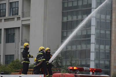 本次演練科目分為火災預警、人員緊急疏散、傷員救治和滅火撲救等課目,采用燃放煙霧、模擬真實火災狀況、醫(yī)療救治、消防隊員撲救、學生實地參觀消防救援車輛內(nèi)部結(jié)構(gòu)等形式開展。我校大學生安全服務志愿者協(xié)會的同學們還為新生進行了快速穿戴防火服、連接水龍帶、緊急滅火等科目的表演。舉辦此次活動使廣大新生掌握了火災逃生疏散避險的技能以及滅火器的使用方法,培養(yǎng)了同學們應對自然災害及公共突發(fā)事件的應急處置能力和自救互救本領。
