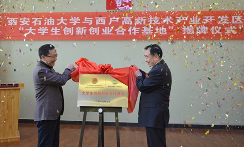 3月28日上午,我校與西戶高新技術(shù)產(chǎn)業(yè)開發(fā)區(qū)“大學(xué)生創(chuàng)新創(chuàng)業(yè)合作基地”揭牌儀式分別在我校新校區(qū)大學(xué)生眾創(chuàng)空間和西戶高新技術(shù)產(chǎn)業(yè)開發(fā)區(qū)舉辦。校黨委副書記雷西合、西戶高新技術(shù)產(chǎn)業(yè)開發(fā)區(qū)發(fā)展有限公司董事長胡選利、西安西戶科技企業(yè)孵化器有限公司董事長張文兵、開發(fā)區(qū)企業(yè)代表、我校相關(guān)部門負(fù)責(zé)人及師生代表參加了活動。
