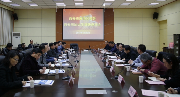 賽云秀書記對劉崇利主任、樊軍榮部長一行來校調(diào)研表示歡迎。他說,西安石油大學(xué)是雁塔區(qū)的駐地單位,多年來學(xué)校與雁塔區(qū)保持著密切的校地關(guān)系。希望雁塔區(qū)區(qū)委、區(qū)政府今后能夠給予學(xué)校更多的關(guān)注與支持,使雁塔區(qū)與學(xué)校攜手發(fā)展。