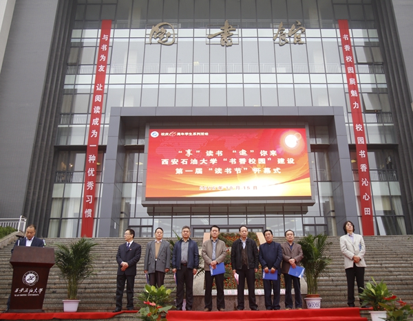 10月15日上午,我?!皶阈@”建設第一屆讀書節(jié)開幕式在新校區(qū)圖書館南廣場隆重舉行。校黨政領(lǐng)導賽云秀、雷西合、陳軍斌,國家一級作家、省文聯(lián)副主席、省作協(xié)副主席高建群,我校人文學院教授王心劍,省圖書館、省新聞出版廣電局、嘉匯漢唐圖書有限責任公司相關(guān)領(lǐng)導、嘉賓出席開幕式。我校相關(guān)部門、各院(部、系)負責人,全體輔導員及學生代表參加了開幕式。副校長陳軍斌主持開幕式。