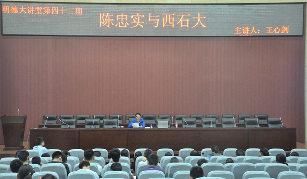 9月29日晚,由校團(tuán)委主辦的校慶65周年系列活動(dòng)之明德大講堂第42期《陳忠實(shí)與西石大》在新校區(qū)圖書館弘石報(bào)告廳舉辦。我校人文學(xué)院王心劍教授擔(dān)任主講,校團(tuán)委副書記何國強(qiáng)老師主持講座,新校區(qū)300余名師生聽取了講座。