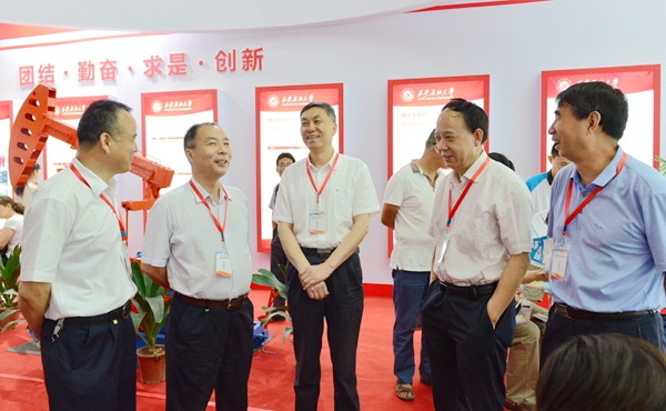 省委高教工委書記董小龍、省教育廳廳長(zhǎng)王建利參觀我校展區(qū)