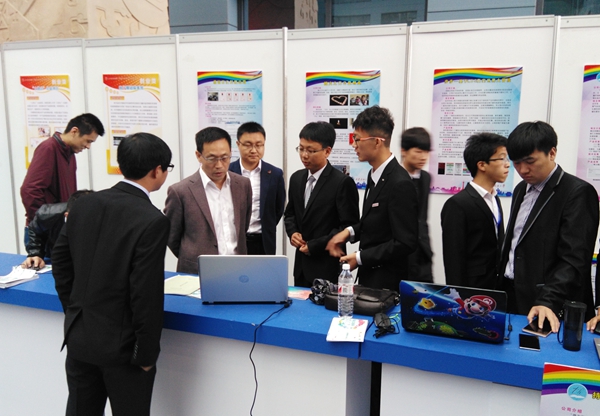開幕式結束后,在校團委負責人的陪同下,雷西合副書記參觀了我校作品展區(qū),并與我校參賽師生親切交談,認真聽取了各個參賽作品的介紹,對作品的創(chuàng)新性和實用性給予了肯定。