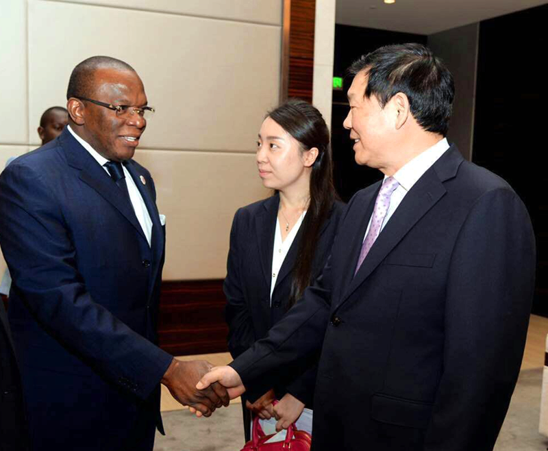 陜西省委書記婁勤儉與幾內(nèi)亞總統(tǒng)府國務(wù)部長兼總統(tǒng)投資事務(wù)顧問易卜拉欣瑪?卡索里?弗法納親切握手