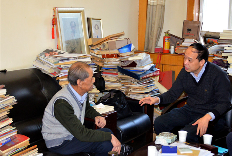 先生在西石大的生活一直為學校領(lǐng)導(dǎo)和眾多師生所牽掛。2015年12月22日上午,深居簡出的陳忠實在西石大居所里迎來了一位客人——西安石油大學賽云秀書記來看望老人家了!賽書記詢問了先生的生活起居和身體健康狀況,并送上了全校師生的問候和祝福。兩人相談甚歡,共同回憶了多年相識相交的友誼。賽書記說,先生是國內(nèi)外知名的文學大家,在時代進步、思想解放、信息暢通的今天,先生深厚的文化素養(yǎng)、開闊的藝術(shù)視野、深邃的思想力度、高尚的人格修為和簡樸的生活理念令人敬佩。賽書記代表學校感謝先生多年來為學校建設(shè)發(fā)展所做出的貢獻,囑托有關(guān)部門切實為先生的生活提供全方位的服務(wù)。2016年4月28日,賽書記特地趕到醫(yī)院,再次看望彌留之際的陳忠實先生。2016年4月27日,我校與陜西省作協(xié)聯(lián)合召開王心劍小說《生民》研討會,陳忠實先生還發(fā)來了賀信。
