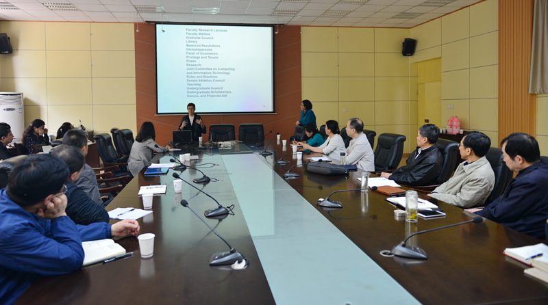 Ellen Switkes博士在報(bào)告中對(duì)美國(guó)加州的高等教育體系作了介紹,重點(diǎn)介紹了加州大學(xué)伯克利分校的成功經(jīng)驗(yàn),并指出了該校存在的問(wèn)題和面臨的挑戰(zhàn)。滕霞博士重點(diǎn)介紹了加州大學(xué)伯克利分校協(xié)同創(chuàng)新的運(yùn)作模式、理念和成就。會(huì)議中,參會(huì)人員就機(jī)構(gòu)調(diào)整、人事考核、教授委員會(huì)設(shè)置等方面工作與兩位報(bào)告人進(jìn)行了積極互動(dòng)。