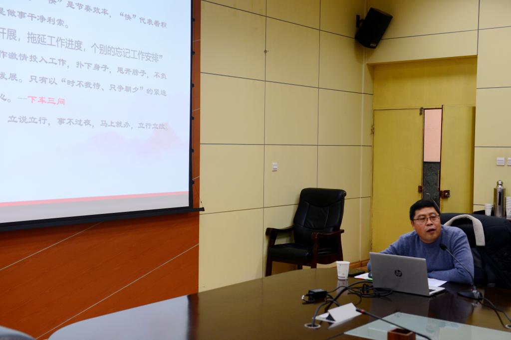 會(huì)前,教務(wù)處邀請(qǐng)馬克思主義學(xué)院黨總支書記張偉作了題為《弘揚(yáng)鐵人精神 踐行優(yōu)良作風(fēng)》的專題報(bào)告,報(bào)告從鐵人簡介談起,并從鐵人精神內(nèi)涵、作風(fēng)建設(shè)重要意義、踐行優(yōu)良作風(fēng)三個(gè)方面全面闡述。報(bào)告內(nèi)涵豐富、目標(biāo)明確,對(duì)本科教育教學(xué)工作起到一定的實(shí)踐指導(dǎo)意義。