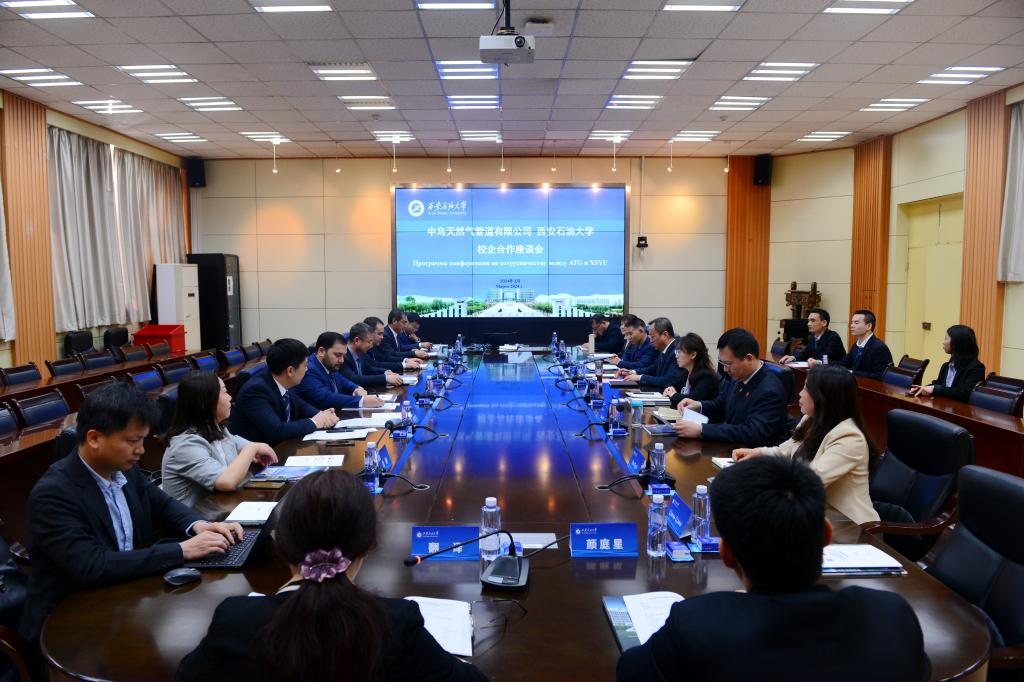 座談會(huì)上,國(guó)際教育學(xué)院(絲路能源學(xué)院)院長(zhǎng)董皓匯報(bào)了學(xué)校國(guó)際化工作情況,中烏天然氣管道有限公司介紹了公司基本情況。雙方就烏茲別克斯坦“中文工坊”項(xiàng)目、烏茲別克斯坦員工國(guó)際化培訓(xùn)及學(xué)歷培養(yǎng)等事項(xiàng)進(jìn)行了深入溝通。