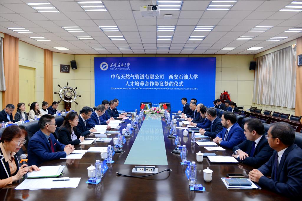 簽約儀式上,常江代表學(xué)校向公司中外嘉賓一行來(lái)??疾?、座談表示熱烈的歡迎。他指出,學(xué)校與中油國(guó)際管道公司聯(lián)合實(shí)施的中塔、中吉人才培養(yǎng)校企合作項(xiàng)目,已經(jīng)成為“一帶一路”人才培養(yǎng)典型成果,項(xiàng)目的成功實(shí)施和創(chuàng)新的培養(yǎng)模式在中塔、中吉兩國(guó)企業(yè)界、教育界引起廣泛關(guān)注和贊譽(yù)。他表示,中烏天然氣管道作為“中亞-中國(guó)”天然氣管道的重要組成部分,是在中烏兩國(guó)領(lǐng)導(dǎo)人親自推動(dòng)下實(shí)施的具有重大戰(zhàn)略意義的宏偉工程,也是共建“一帶一路”倡議下能源合作的優(yōu)秀典范。學(xué)校衷心希望繼續(xù)發(fā)揮自身優(yōu)勢(shì)和特色,為中烏能源領(lǐng)域合作提供人才支撐和智力支持,持續(xù)推進(jìn)中烏人才培養(yǎng)、產(chǎn)學(xué)研等方面合作,產(chǎn)出更多碩果。