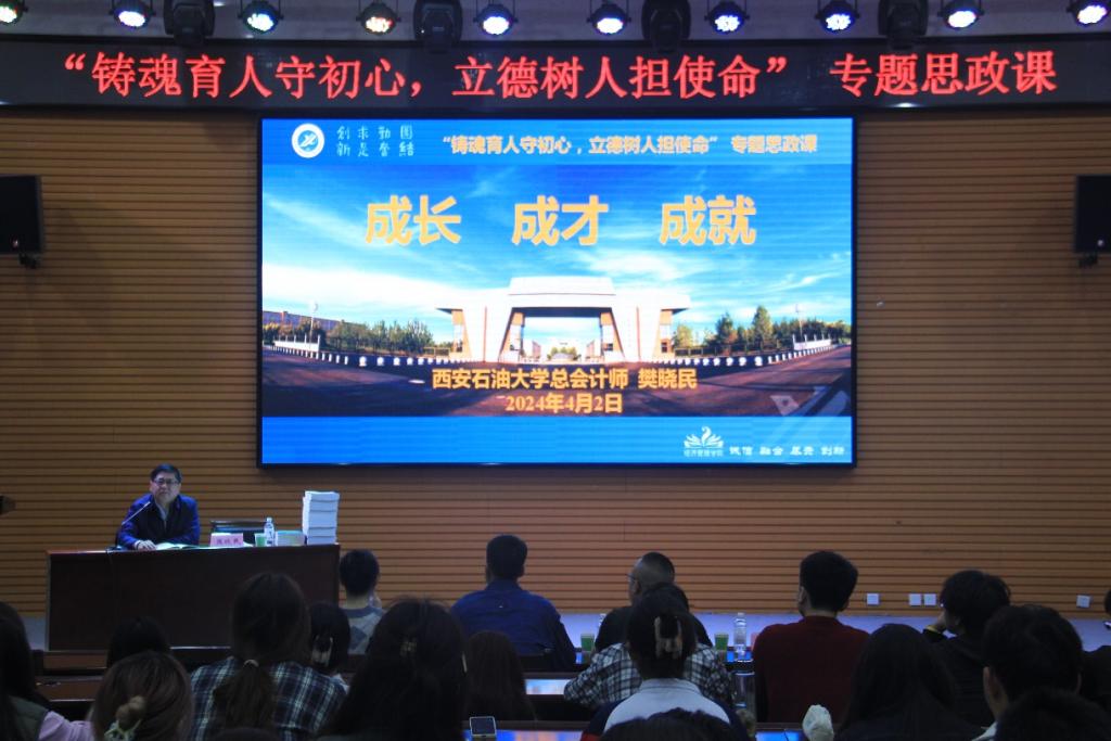 為深入學習貫徹習近平新時代中國特色社會主義思想和黨的二十大精神,全面落實立德樹人根本任務,4月2日,總會計師樊曉民以《成長、成才、成就》為題,為經(jīng)濟管理學院學生講授“鑄魂育人守初心,立德樹人擔使命”專題思政課。經(jīng)濟管理學院學生工作干部及各年級學生代表200余人參加。