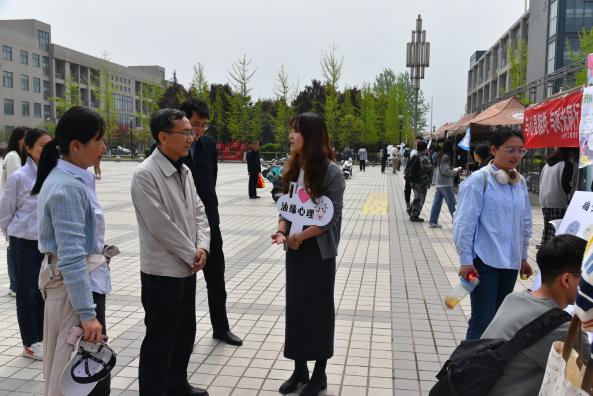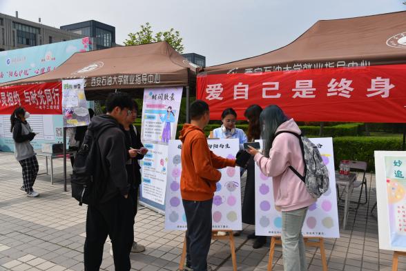 4月7日,陽光柔和,微風(fēng)拂面,恰逢“世界衛(wèi)生日”,我校在鄠邑校區(qū)圖書館南廣場舉辦“油緣會”戶外心理體驗活動暨第九屆“陽光護航”心理育人宣傳季的啟動儀式,樹立“人人享健康共同促健康”理念,同時,12個圍繞“五育并舉促進心理健康”主題設(shè)置的活動展臺也是我校作為教育部油緣成長基地建設(shè)的一次亮相。校黨委副書記張木出席活動?;顒佑蓪W(xué)生工作部(處)(學(xué)生心理成長指導(dǎo)中心)主辦,校醫(yī)院、地球科學(xué)與工程學(xué)院、電子工程學(xué)院、心理委員聯(lián)合協(xié)會、心理協(xié)會共同協(xié)辦。全校500余名師生員工參與體驗。