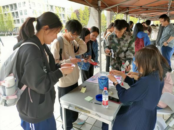 地球科學(xué)與工程學(xué)院、電子工程學(xué)院組織的“以德育心”展臺主題分別為“妙筆騫行”和“時光膠囊”,讓同學(xué)們在活動中體驗情緒、認(rèn)知自我,直面時光流逝,學(xué)會珍惜時間。