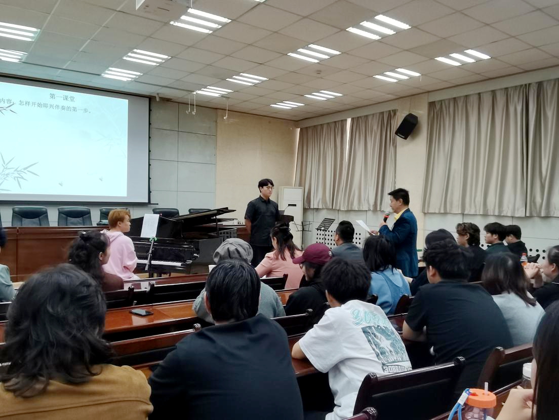 在交流和討論環(huán)節(jié),他耐心解答了師生們關(guān)于即興彈奏的疑問和困惑,并分享了自己在即興彈奏方面的心得和體會?,F(xiàn)場氛圍非常熱烈。