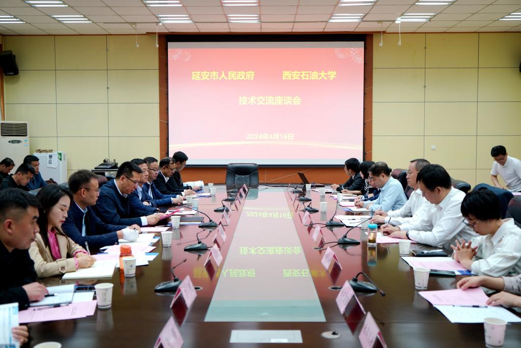 延安市科技局、秦創(chuàng)原(延安)創(chuàng)新促進中心、黃陵高新區(qū)、寶塔區(qū)科技局等相關(guān)部門負責人,陜西延長石油機械裝備制造有限公司、延安嘉盛石油機械有限責任公司、陜西慶隆石油工程技術(shù)服務(wù)有限公司、陜西唐正能源科技有限公司等16家企業(yè)代表,我??蒲刑?、校友工作與合作交流處負責人及科研團隊教師代表參加上述活動。
