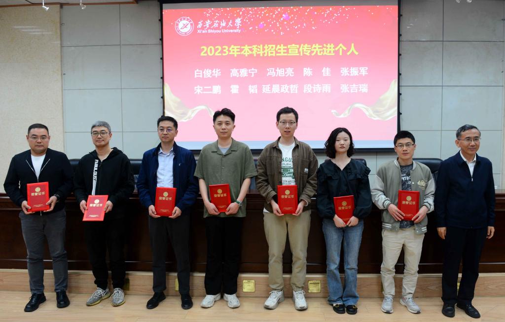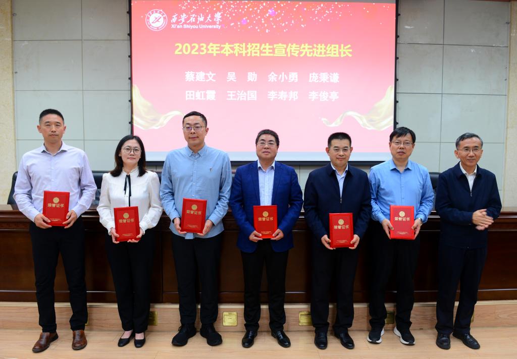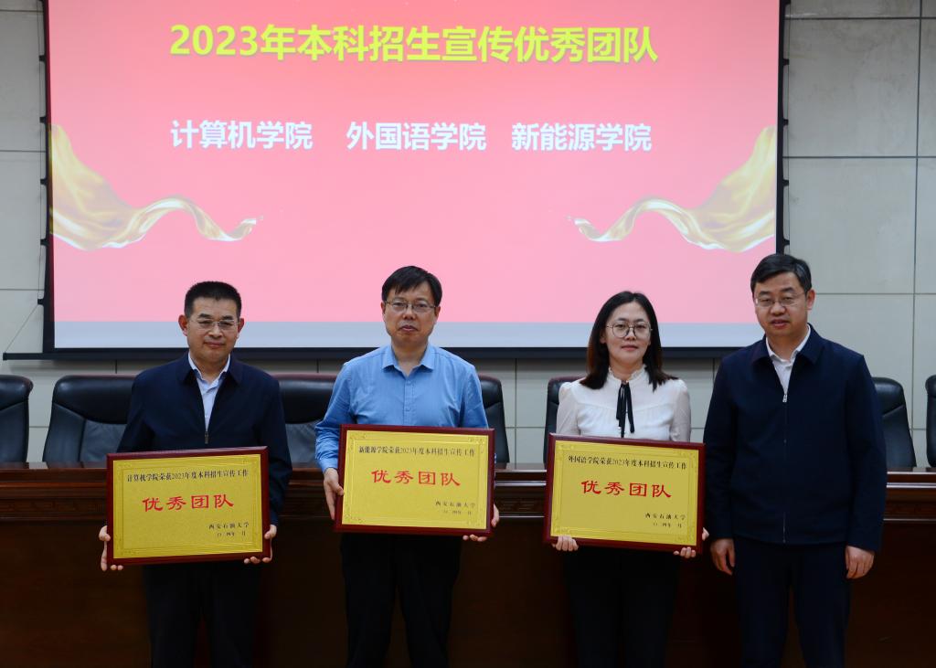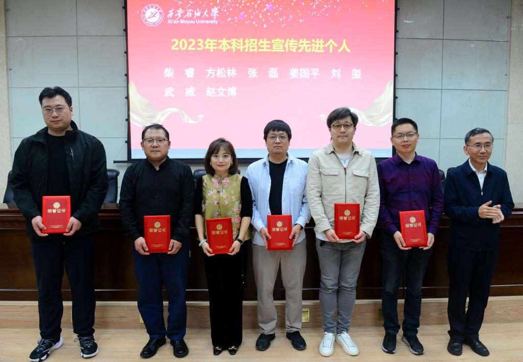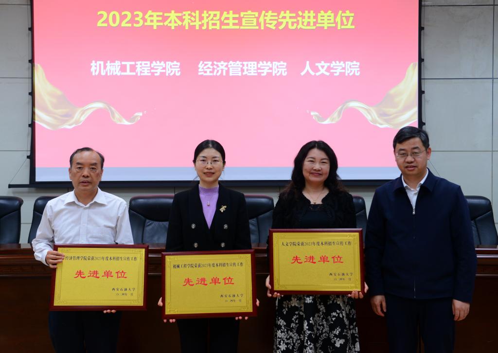 張木宣讀了學(xué)?!蛾P(guān)于表彰2023年本科招生宣傳工作先進(jìn)集體和先進(jìn)個(gè)人的決定》,對6個(gè)集體和25名個(gè)人進(jìn)行了表彰。王進(jìn)富和張木分別為獲獎集體和個(gè)人頒發(fā)了獎牌和證書。