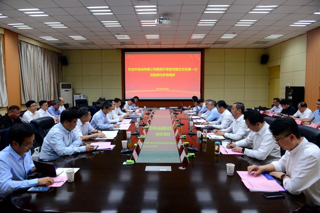 常江代表學(xué)校對劉建忠一行到訪我校表示熱烈歡迎,對中國海油及中海油服一直以來給予學(xué)校的大力支持和幫助表示感謝。他談到,我校與中國海油建立了深厚的合作情誼,校企合作不僅給雙方帶來了實質(zhì)性的幫助,也促進(jìn)了雙方的互相信任和友好往來,我校將繼續(xù)與中國海油及中海油服深化合作,探索更多合作的可能性,共同推動科研成果轉(zhuǎn)化和人才培養(yǎng)工作。