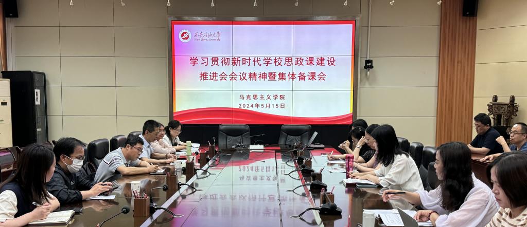 5月15日上午,我校在雁塔校區(qū)會(huì)議中心第二會(huì)議室召開學(xué)習(xí)貫徹新時(shí)代學(xué)校思政課建設(shè)推進(jìn)會(huì)精神座談會(huì)暨思政課教師集體備課會(huì),專題學(xué)習(xí)了習(xí)近平總書記對(duì)學(xué)校思政課建設(shè)作出的重要指示。全體思政課教師參加學(xué)習(xí)。