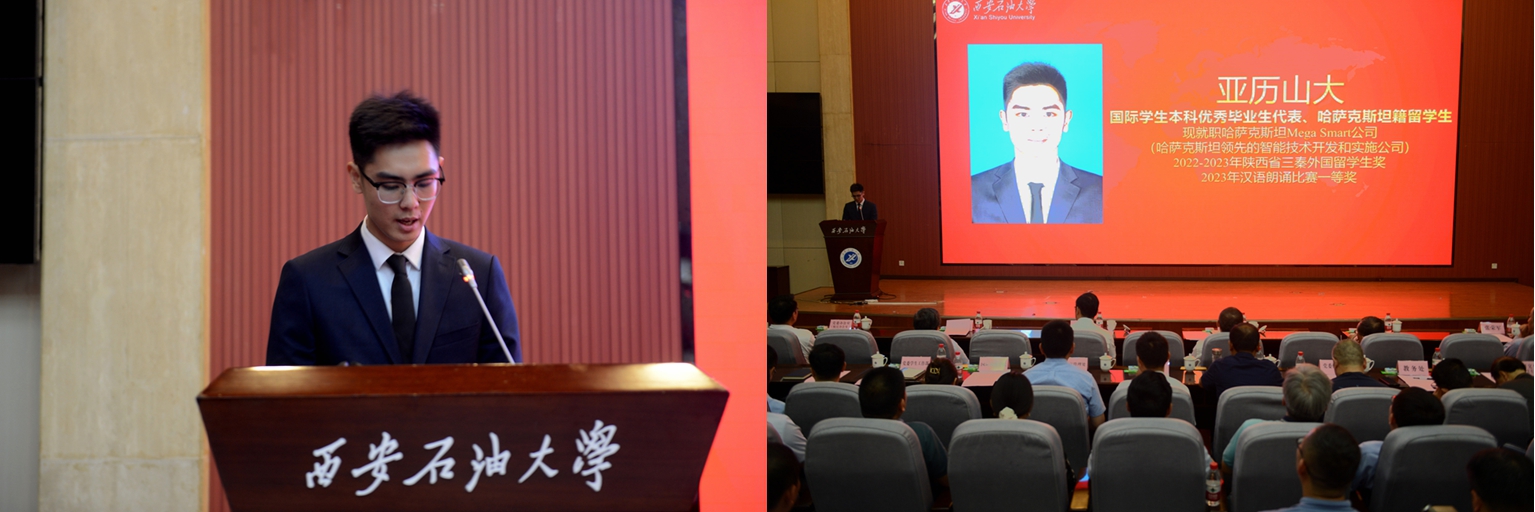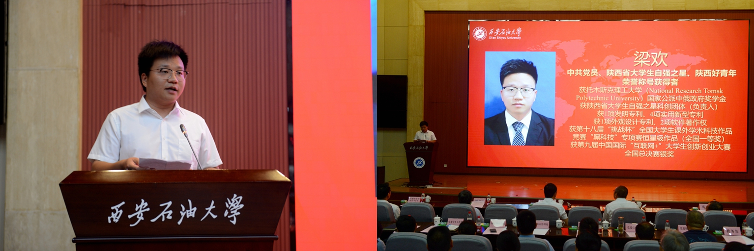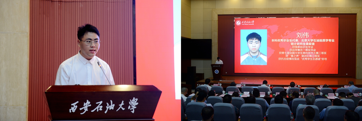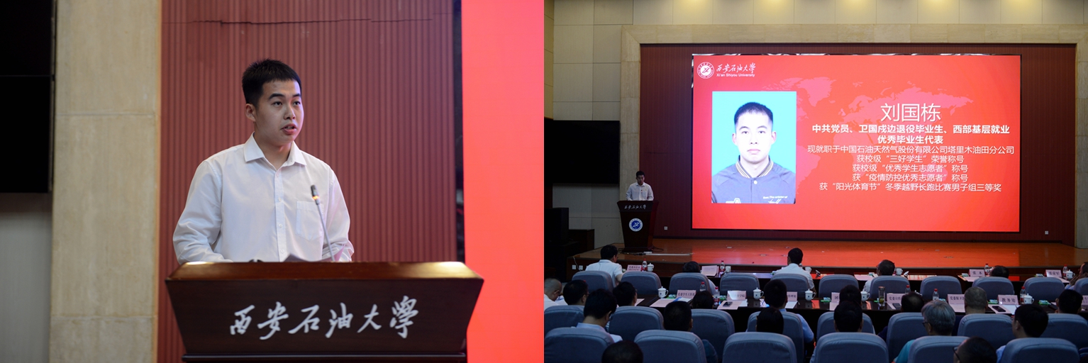 中共黨員、陜西省大學生自強之星、陜西好青年榮譽稱號獲得者,石油工程學院學生梁歡;本科優(yōu)秀畢業(yè)生代表、北京大學石油地質學專業(yè)碩士研究生錄取者,地球科學與工程學院學生劉偉;國際學生本科優(yōu)秀畢業(yè)生代表、哈薩克斯坦籍留學生,國際教育學院學生亞歷山大;中共黨員、碩士研究生優(yōu)秀畢業(yè)生代表、西安交通大學管理科學與工程專業(yè)博士研究生錄取者,經濟管理學院學生董藝佳;中共黨員、衛(wèi)國戍邊退役畢業(yè)生代表、西部基層就業(yè)優(yōu)秀畢業(yè)生代表,石油工程學院學生劉國棟分別作了交流發(fā)言。